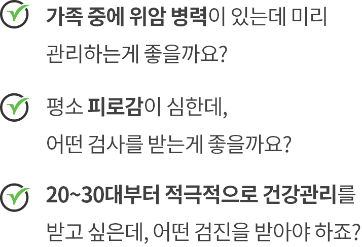 20~30대부터 적극적으로 건강관리를 받고 싶은데, 어떤 검진을 받아야 하죠?