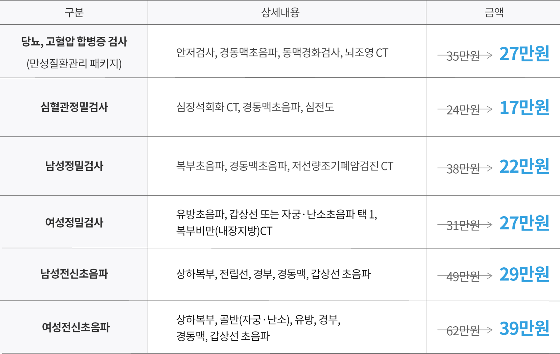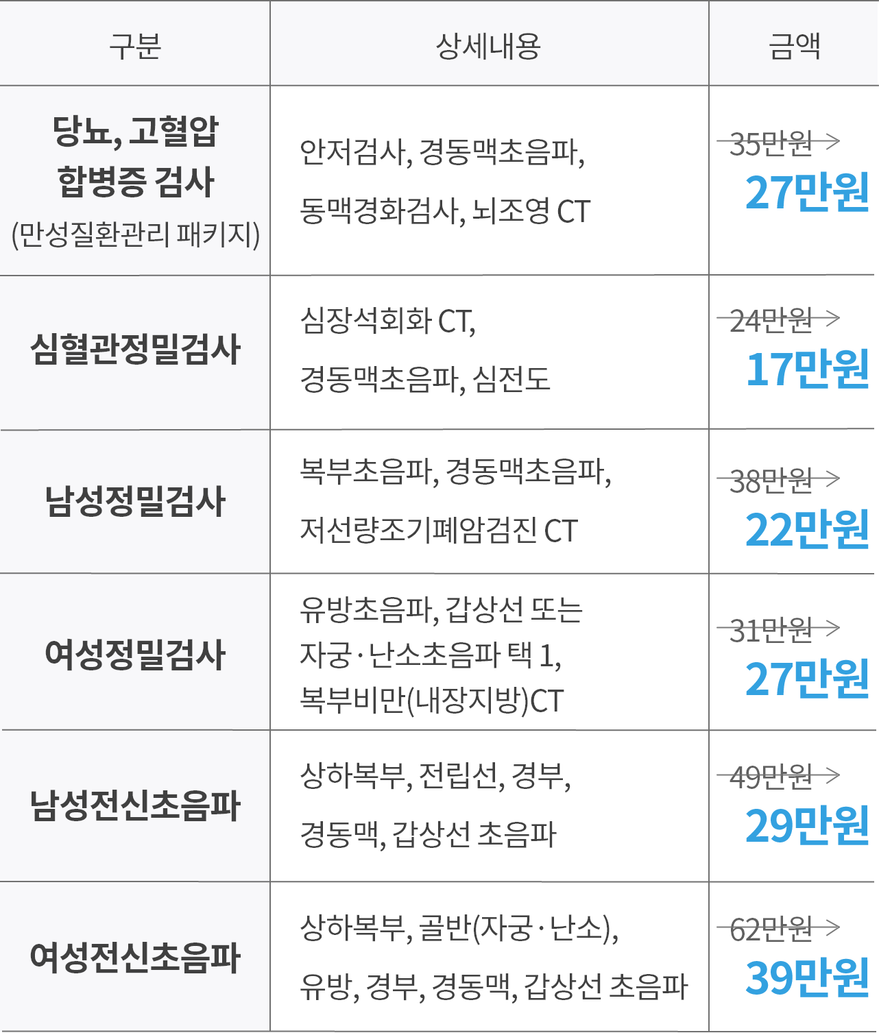 *특정 검사 제외 시 금액 차감 및 대체 불가.
