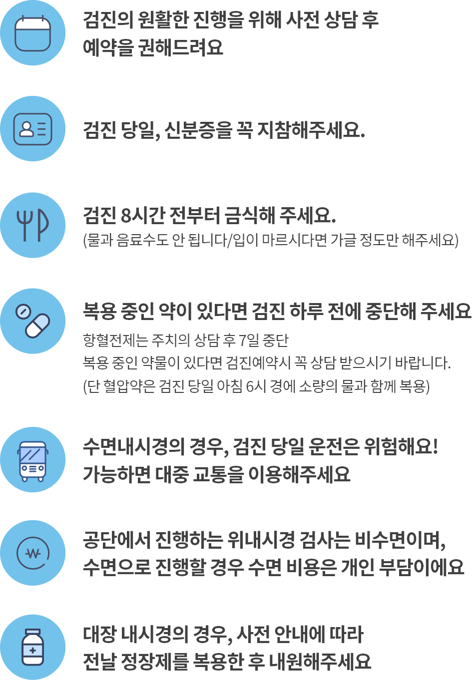 복용 중인 약물이 있다면 검진예약시 꼭 상담 받으시기 바랍니다.